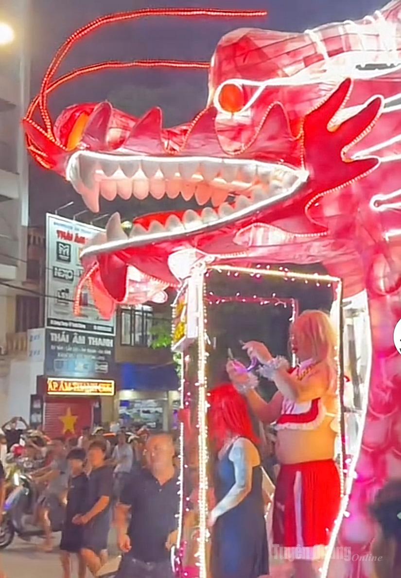Đáng nói là có tốp thanh niên đi cùng những xe mô hình tổ chức nhảy múa trên đường, dù tạo không khí vui vẻ, phấn khích, nhưng trang phục thì phản cảm, đi ngược với tinh thần trong sáng, hồn nhiên vốn là nét đặc trưng của Tết Trung thu dành cho thiếu nhi. Có những cô gái trong vai “chị Hằng”, nhưng khiến người xem hội tưởng mình đang ở Trung Quốc. Có top thanh nữ mặc thiếu vải, khiến người xem... đỏ mặt.