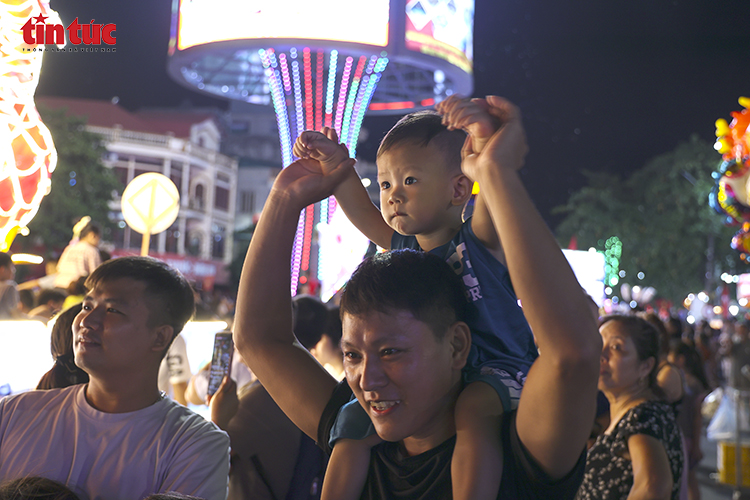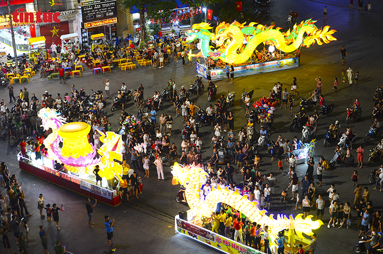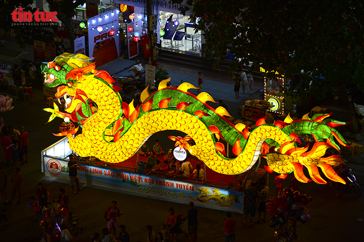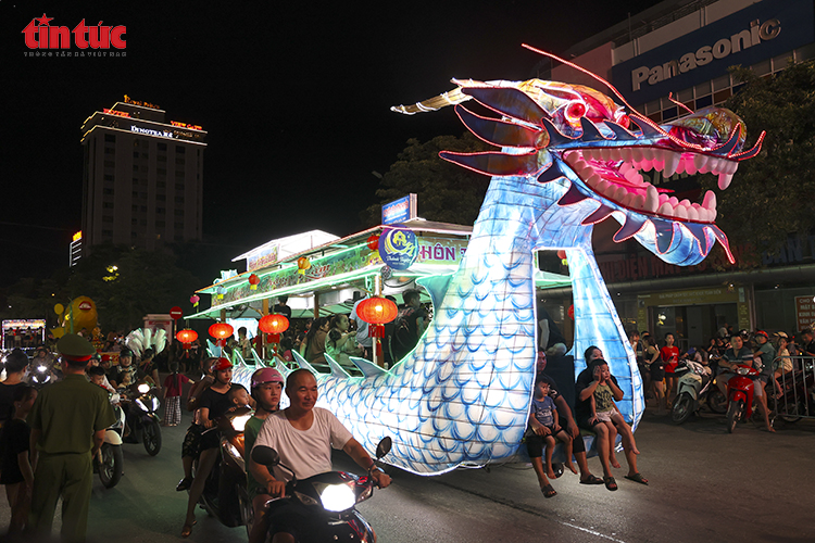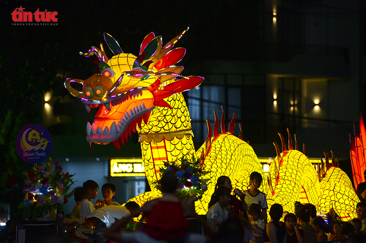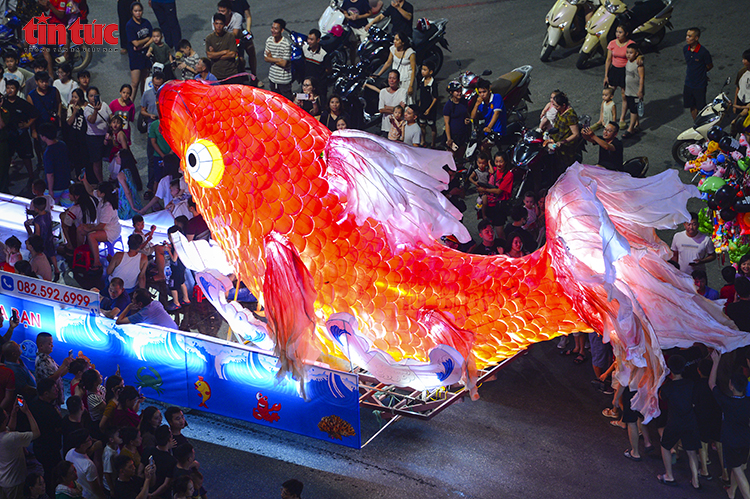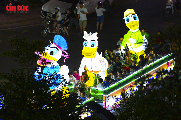Cả khu phố náo nhiệt khi mô hình đèn khổng lồ diễu hành qua.