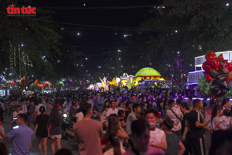 Không gian đêm hội rực sáng với hàng chục mô hình đèn nhiều màu sắc.