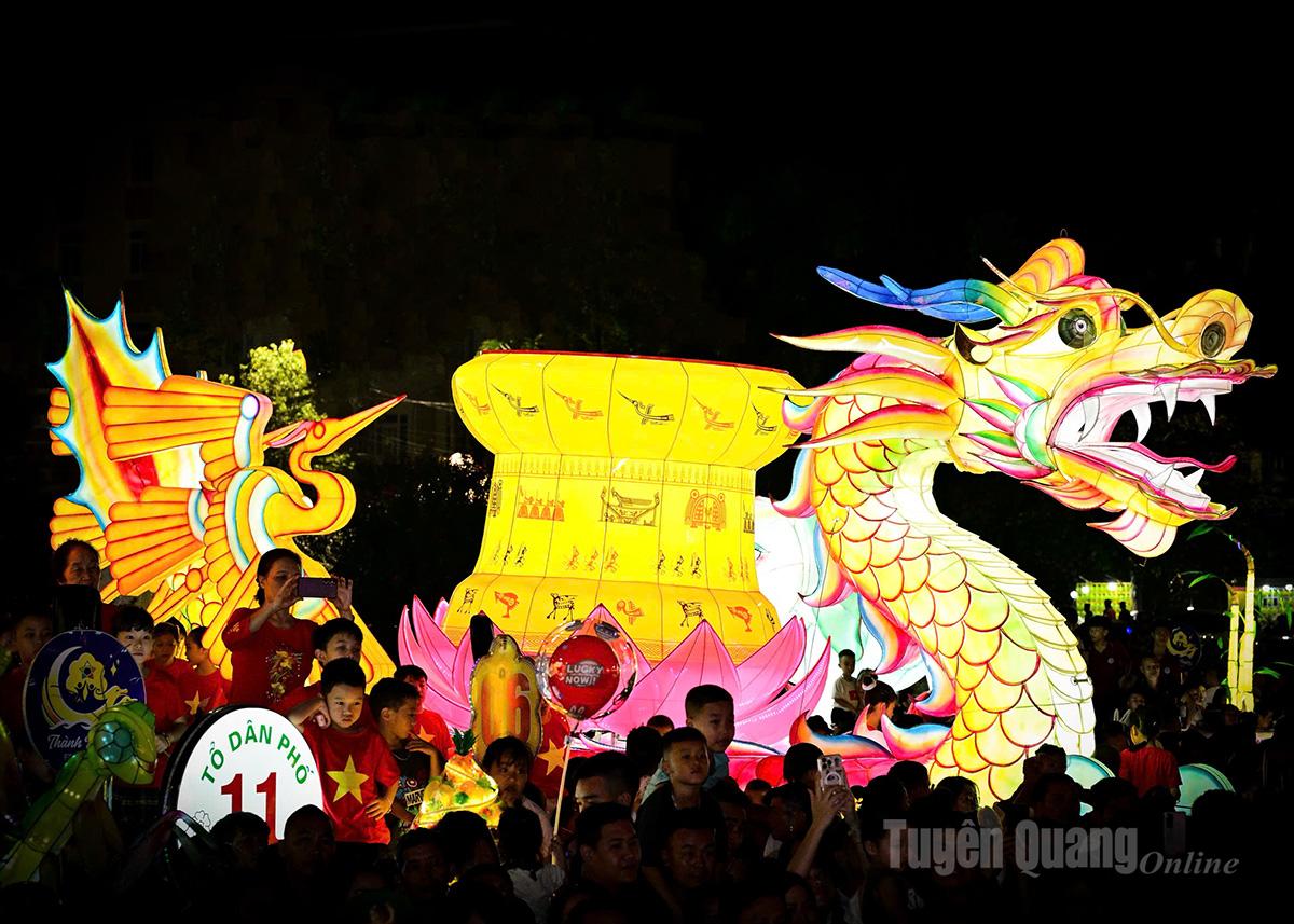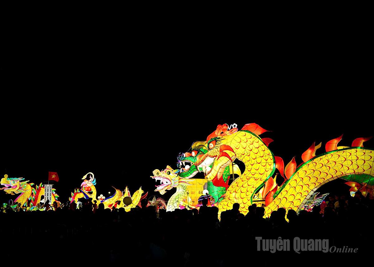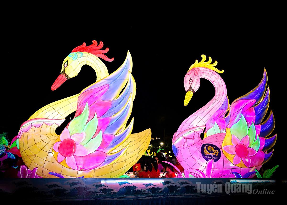 Các mô hình đèn lồng khổng lồ chỉ có ở Tuyên Quang mang đến cho người xem cảm giác mãn nhãn và lung linh sắc màu.