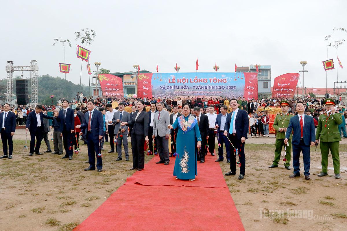 Cùng dự có các đồng chí: Nguyễn Hồng Trang, Ủy viên Ban Thường vụ Tỉnh ủy, Phó Bí thư Thường trực chuyên trách Đảng ủy các cơ quan Đảng tỉnh; Ma Thị Thúy, Ủy viên Ban Chấp hành Đảng bộ tỉnh, Phó trưởng Đoàn Đại biểu Quốc hội hoạt động chuyên trách khóa XV tỉnh; lãnh đạo các sở, ban, ngành của tỉnh, lãnh đạo xã Chiêm Hóa qua các thời kỳ và các xã lân cận, cùng đông đảo Nhân dân các dân tộc trên địa bàn và du khách thập phương.