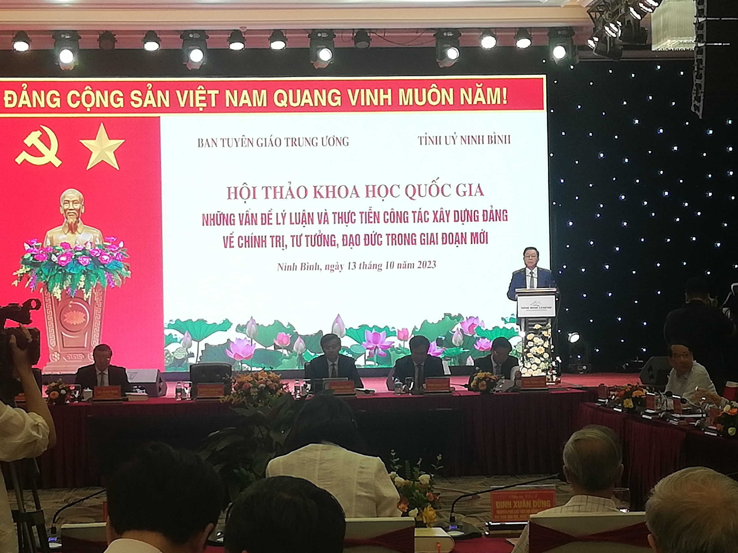 Ngày 13/10/2023, Ban Tuyên giáo Trung ương phối hợp với Tỉnh ủy Ninh Bình tổ chức Hội thảo khoa học quốc gia “Những vấn đề lý luận và thực tiễn công tác xây dựng Đảng về chính trị, tư tưởng, đạo đức trong giai đoạn mới”.