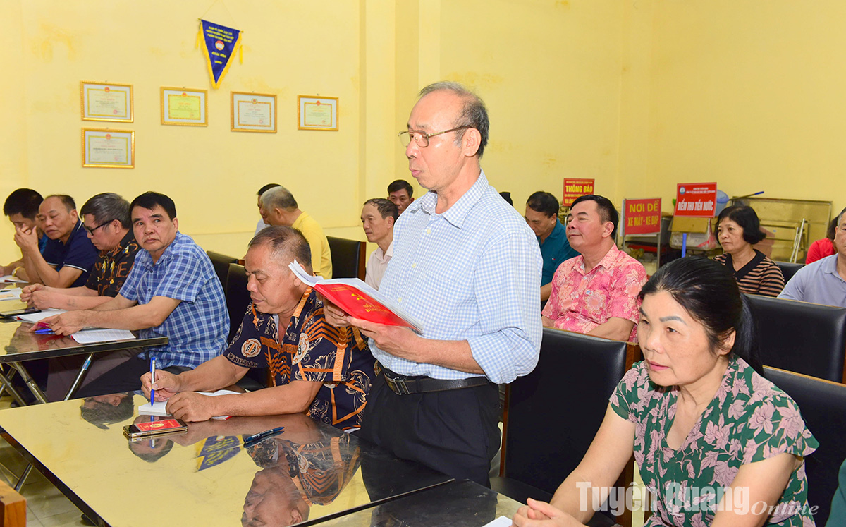 Đảng viên cao tuổi ở tổ 17, phường Tân Quang (TP Tuyên Quang) thảo luận tại một cuộc sinh hoạt chi bộ của tổ.