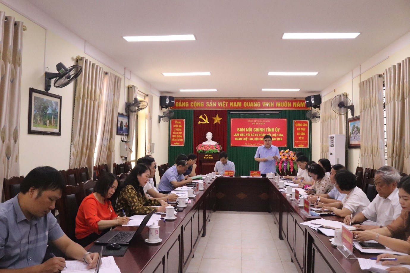 Đồng chí Hoàng Đình Phới, Ủy viên Ban Thường vụ Tỉnh ủy, Trưởng Ban Nội chính Tỉnh ủy Hà Giang làm việc với Sở Tư pháp, Hội Luật gia, Đoàn Luật sư, Hội công chức viên tỉnh Hà Giang (cũ)