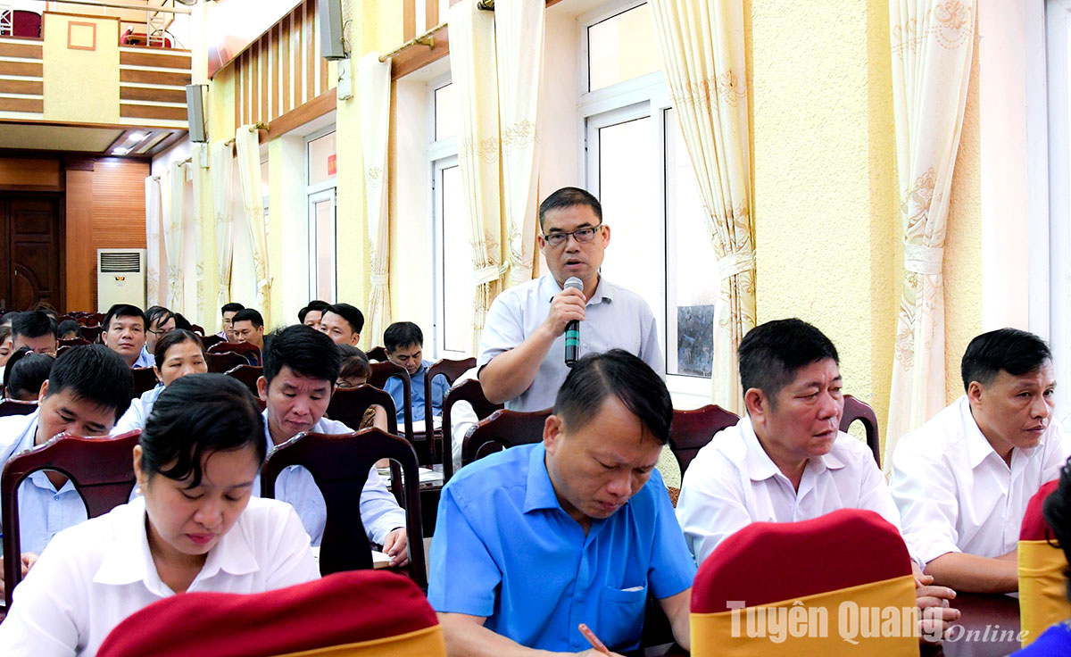 Các đại biểu phát biểu ý kiến tại hội nghị đối thoại giữa người đứng đầu cấp ủy, chính quyền với MTTQ và Nhân dân tại huyện Chiêm Hóa.