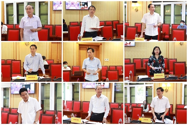 Các thành viên Ban Chỉ đạo đóng góp ý kiến xây dựng Đề án tại Phiên họp.