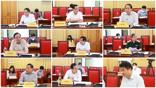 Các thành viên Ban Chỉ đạo đóng góp ý kiến xây dựng Đề án tại Phiên họp. (Ảnh: Đỗ An)