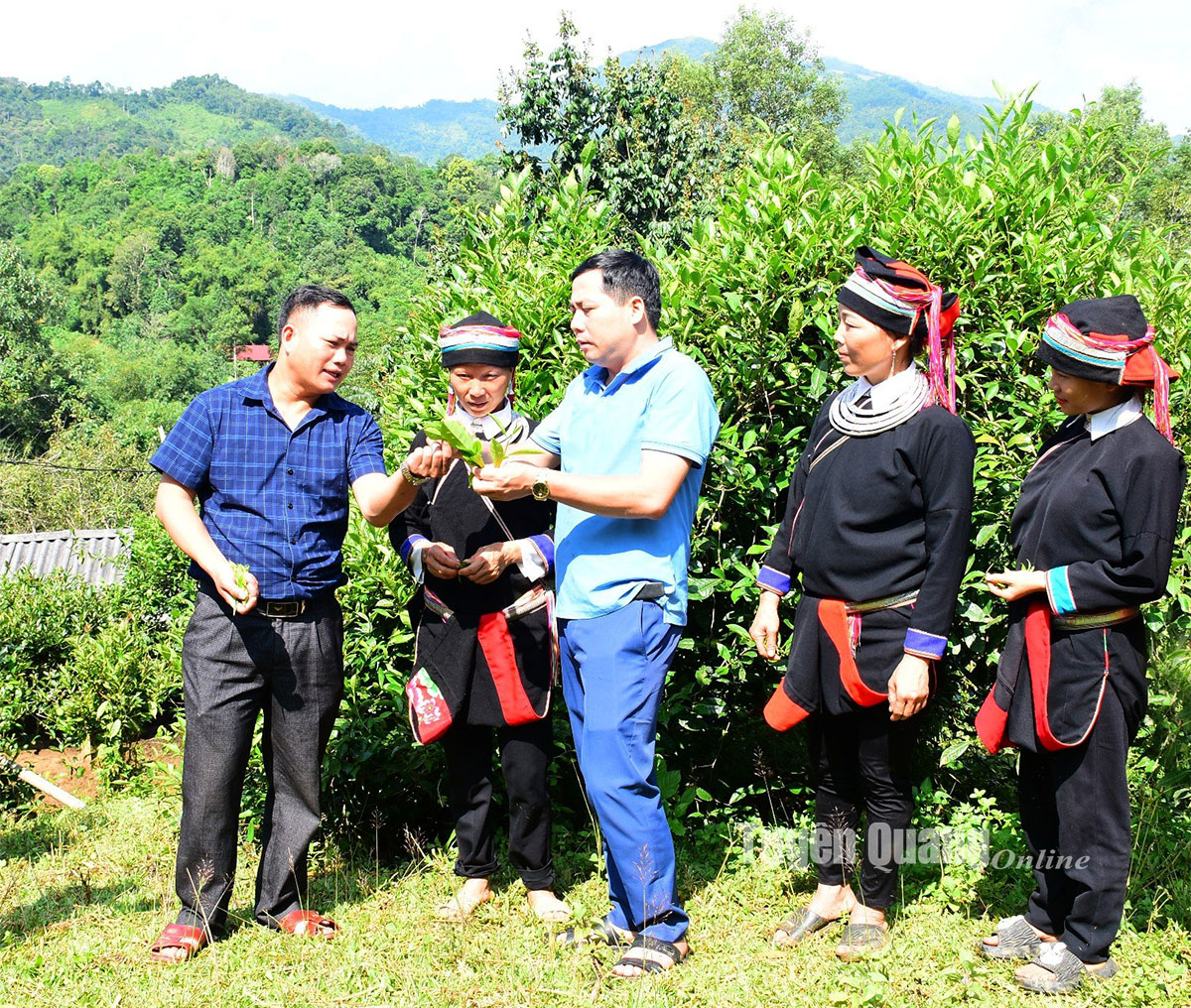 Bí thư Chi bộ, Trưởng thôn Pác Củng, xã Thượng Nông tuyên truyền, hướng dẫn người dân trong phát triển nghề trồng chè đặc sản Shan tuyết.