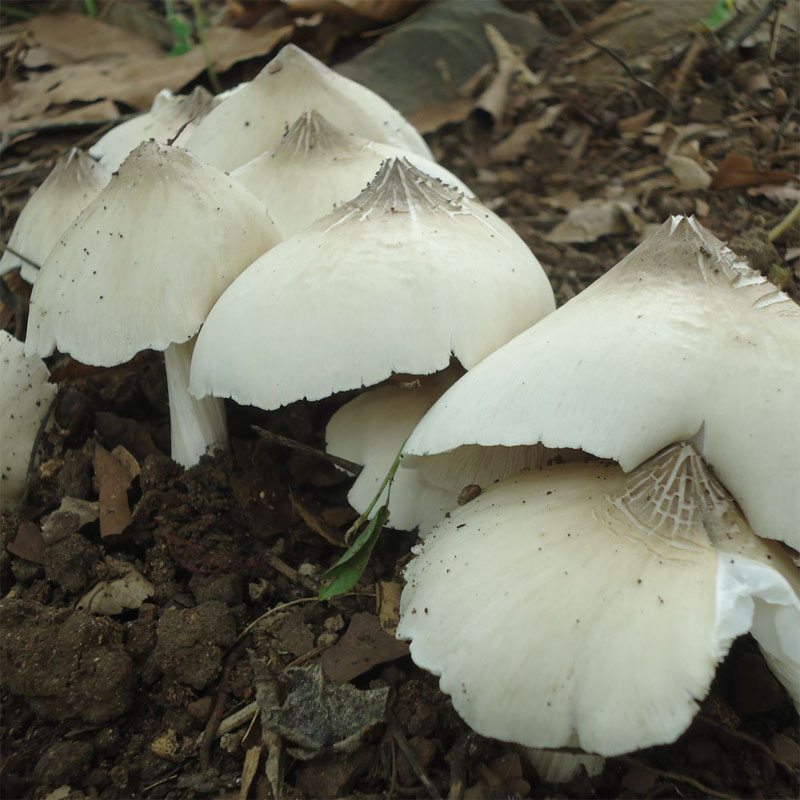Mũ nấm khi nở sẽ xòe hình tròn như ô dù được bung ra có màu trắng tươi.