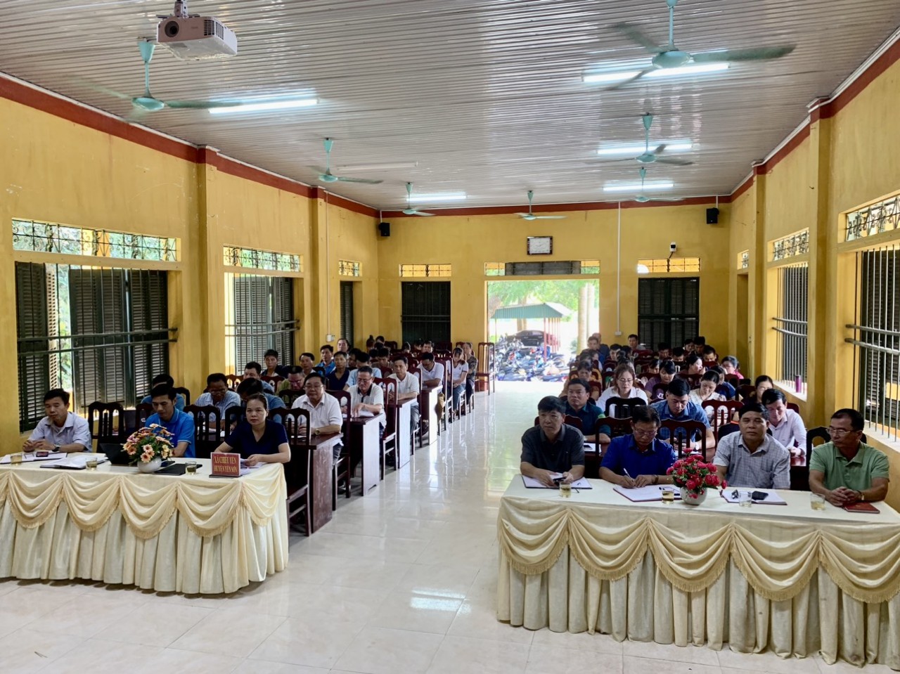 Cán bộ, giáo viên xã Chiêu Yên, huyện Yên Sơn học tập Quy định số 144-QĐ/TW của Bộ Chính trị theo lớp do Đảng ủy xã tổ chức
