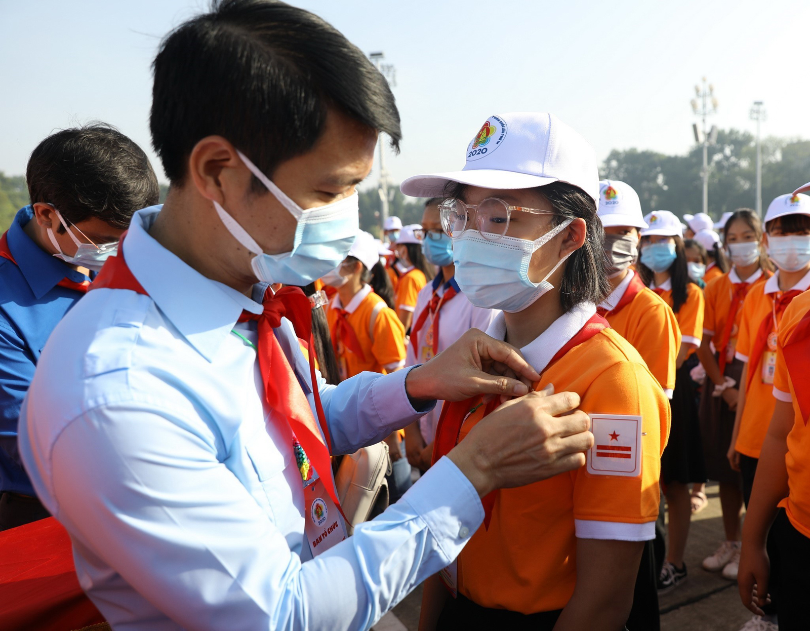 Đổi mới mạnh mẽ nội dung, phương pháp, hình thức học tập, tuyên truyền về tư tưởng, đạo đức, phong cách Hồ Chí Minh cho thế hệ trẻ (Trong ảnh: Đồng chí Nguyễn Ngọc Lương, Bí thư Trung ương Đoàn tặng huy hiệu "Cháu ngoan Bác Hồ" cho đại biểu dự Đại hội Cháu ngoan Bác Hồ toàn quốc lần thứ IX tại Lễ báo công và vào Lăng viếng Chủ tịch Hồ Chí Minh _Ảnh: TTXVN
