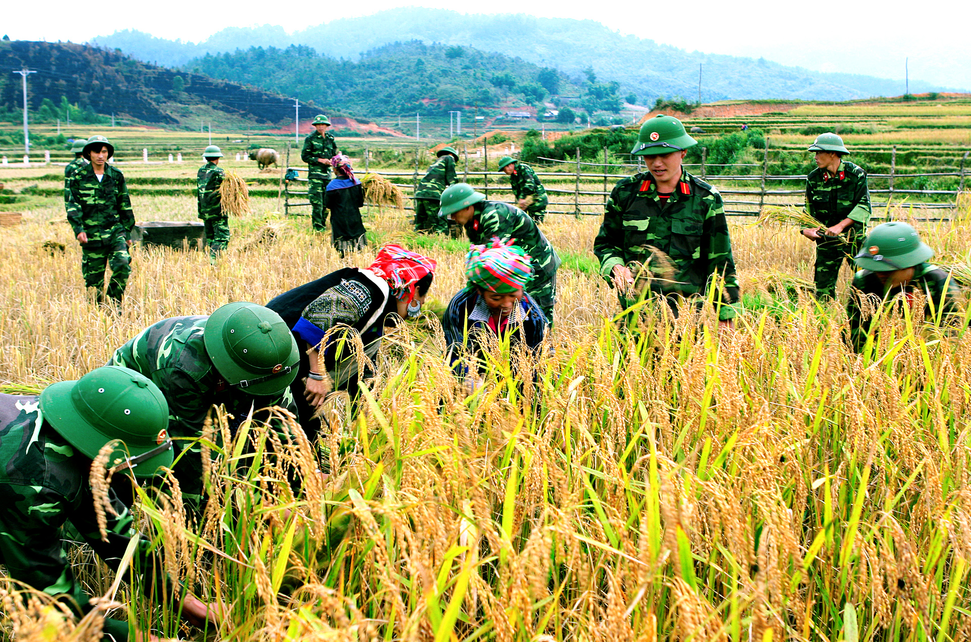 Bộ đội giúp đồng bào gặt lúa _Ảnh: Tư liệu