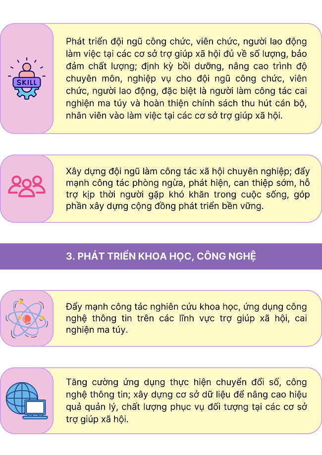 Ngày 16/12/2024, Thủ tướng Chính phủ ban hành Quyết định số 1575/QĐ-TTg phê duyệt Kế hoạch thực hiện Quy hoạch mạng lưới cơ sở trợ giúp xã hội thời kỳ 2021 - 2030, tầm nhìn đến năm 2050 với giải pháp như sau: