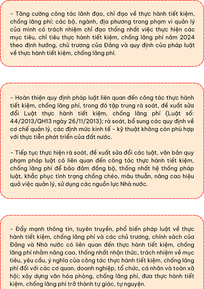Ngày 01/12/2024, Thủ tướng Chính phủ ban hành Công điện 125/CĐ-TTg về việc đẩy mạnh thực hành tiết kiệm, chống lãng phí với một số nhiệm vụ, giải pháp như sau: