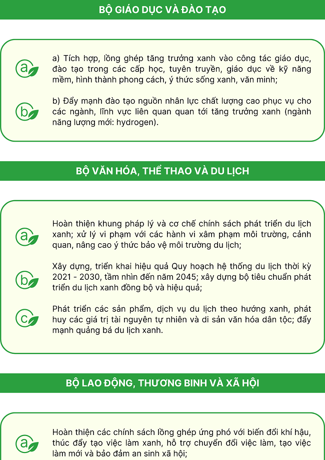 Ngày 09/12/2024 Thủ tướng Chính phủ ban hành Chỉ thị 44/CT-TTg triển khai một số nhiệm vụ, giải pháp trọng tâm nhằm đẩy mạnh thực hiện Chiến lược quốc gia về tăng trưởng xanh giai đoạn 2021 - 2030, tầm nhìn 2050 như sau: