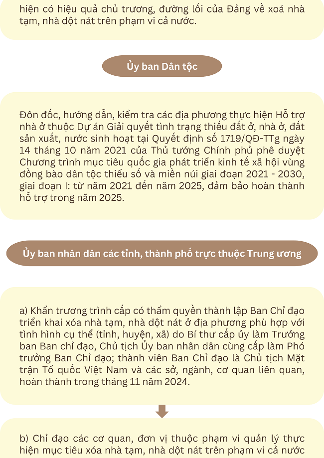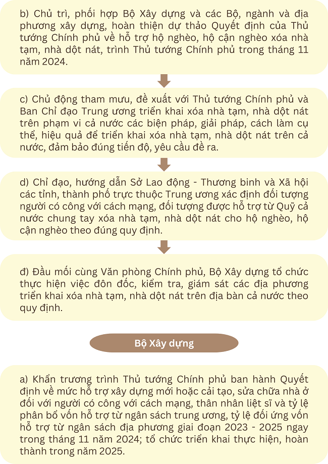Ngày 09/11/2024, Thủ tướng Chính phủ ban hành Chỉ thị 42/CT-TTg về việc đẩy nhanh triển khai xóa nhà tạm, nhà dột nát trên địa bàn cả nước, với mục tiêu, nhiệm vụ và giải pháp như sau: