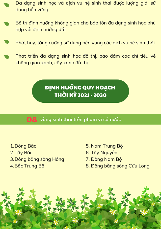 Ngày 08/11/2024, Thủ tướng Chính phủ ban hành Quyết định số 1352/QĐ-TTg phê duyệt quy hoạch bảo tồn đa dạng sinh học quốc gia thời kỳ 2021 - 2030, tầm nhìn đến năm 2050 với mục tiêu như sau: