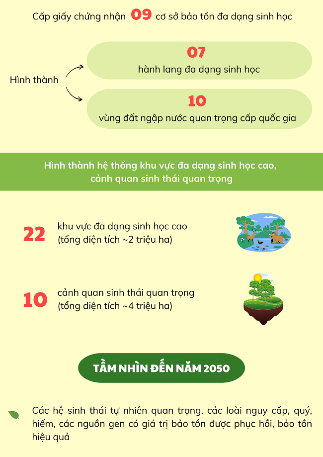 Mục tiêu quy hoạch bảo tồn đa dạng sinh học quốc gia thời kỳ 2021 - 2030, tầm nhìn đến năm 2050