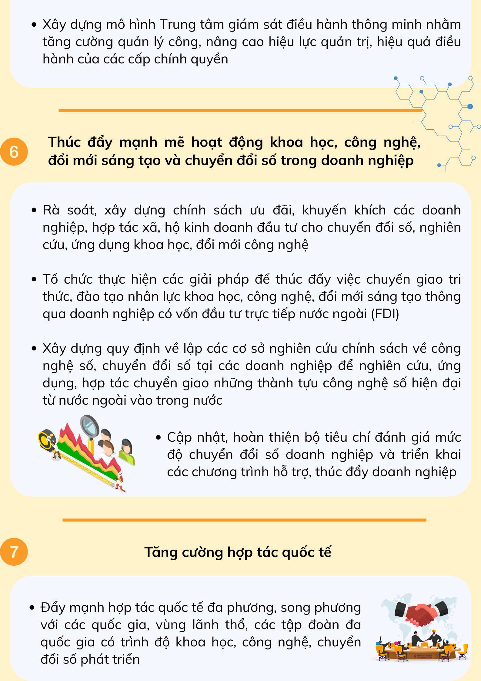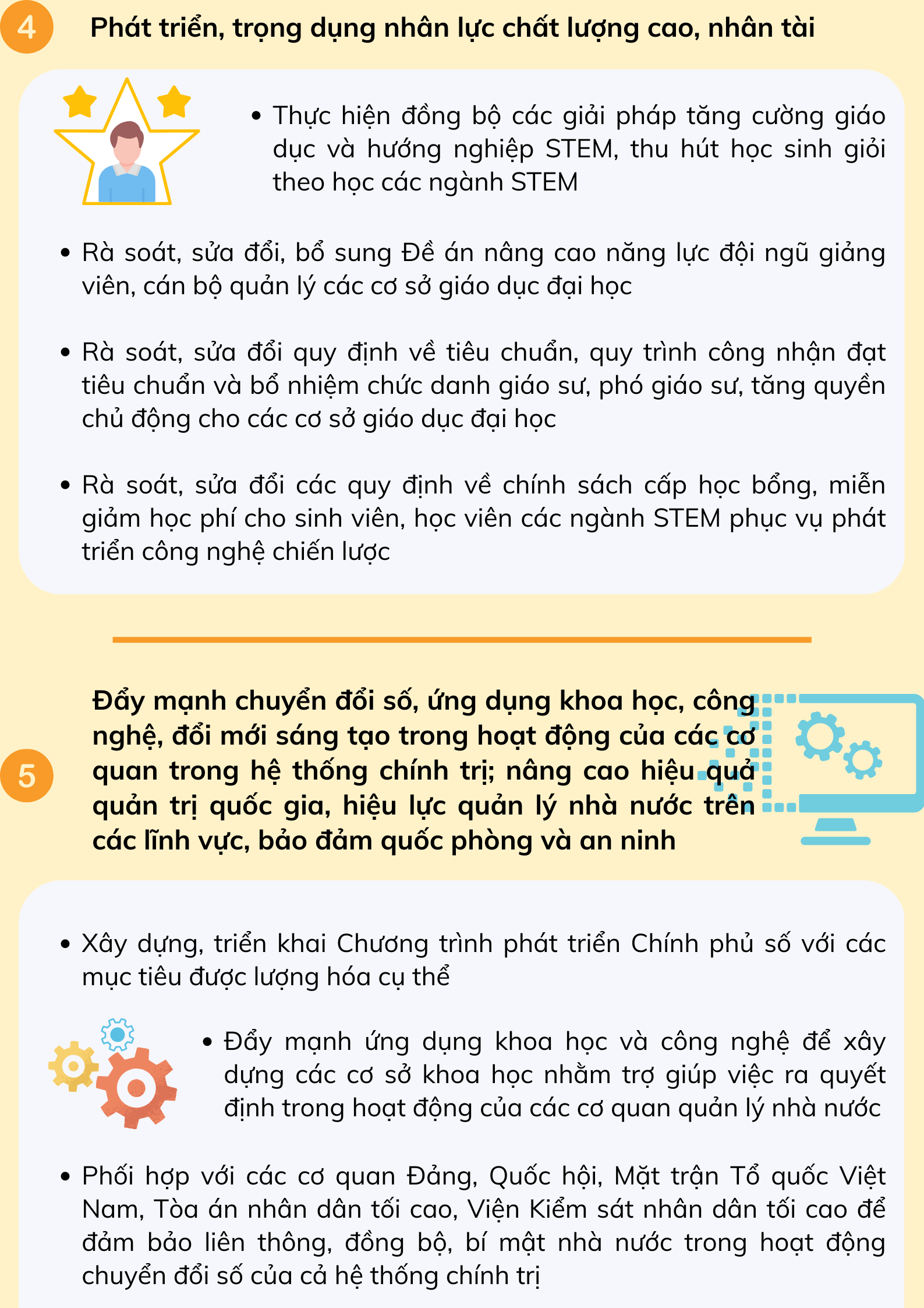 Ngày 01/4/2025, Chính phủ ban hành Nghị quyết số 71/NQ-CP sửa đổi, bổ sung cập nhật Chương trình hành động của Chính phủ thực hiện Nghị quyết số 57-NQ/TW ngày 22 tháng 12 năm 2024 của Bộ Chính trị về đột phá phát triển khoa học, công nghệ, đổi mới sáng tạo và chuyển đổi số quốc gia, với mục tiêu và một số nhiệm vụ như sau: