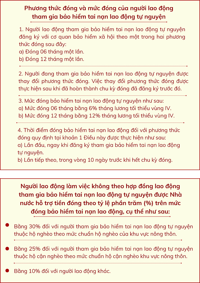Nguyên tắc quản lý hoạt động của Quỹ bảo hiểm tai nạn lao động tự nguyện; phương thức đóng và mức đóng của người lao động; hỗ trợ tiền đóng tham gia bảo hiểm tai nạn lao động tự nguyện
