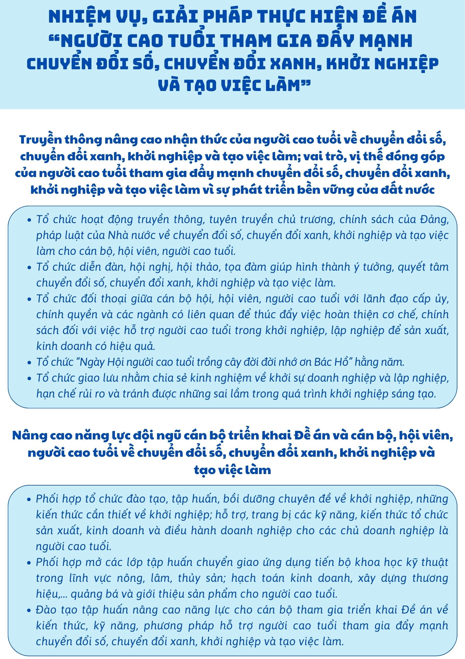 Nhiệm vụ và giải pháp thực hiện Đề án "Người cao tuổi tham gia đẩy mạnh chuyển đổi số, chuyển đổi xanh, khởi nghiệp và tạo việc làm