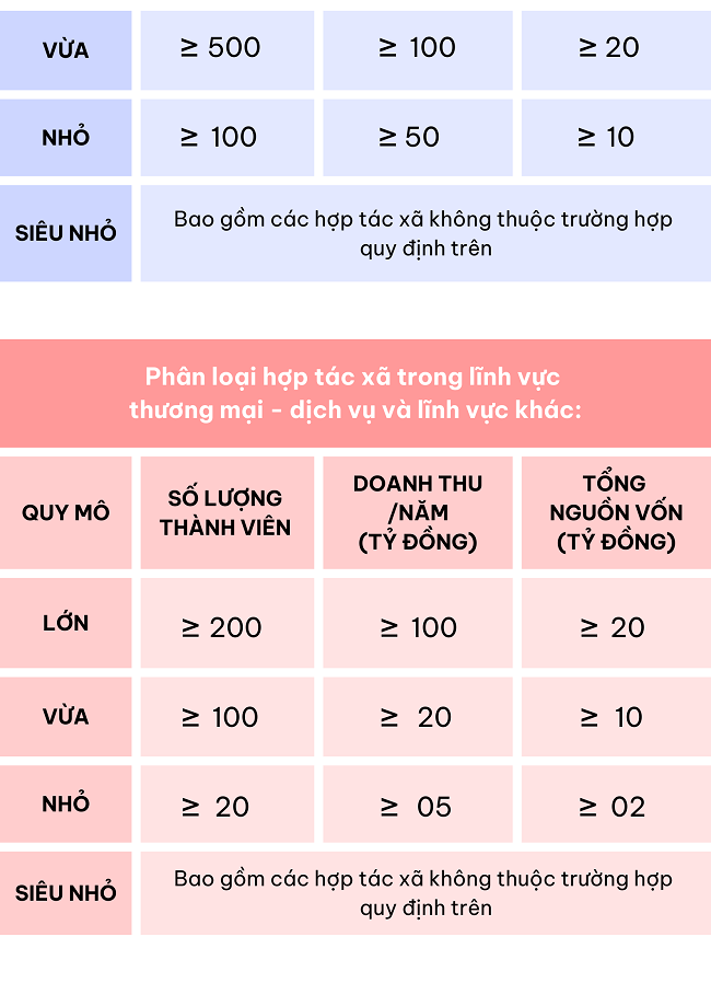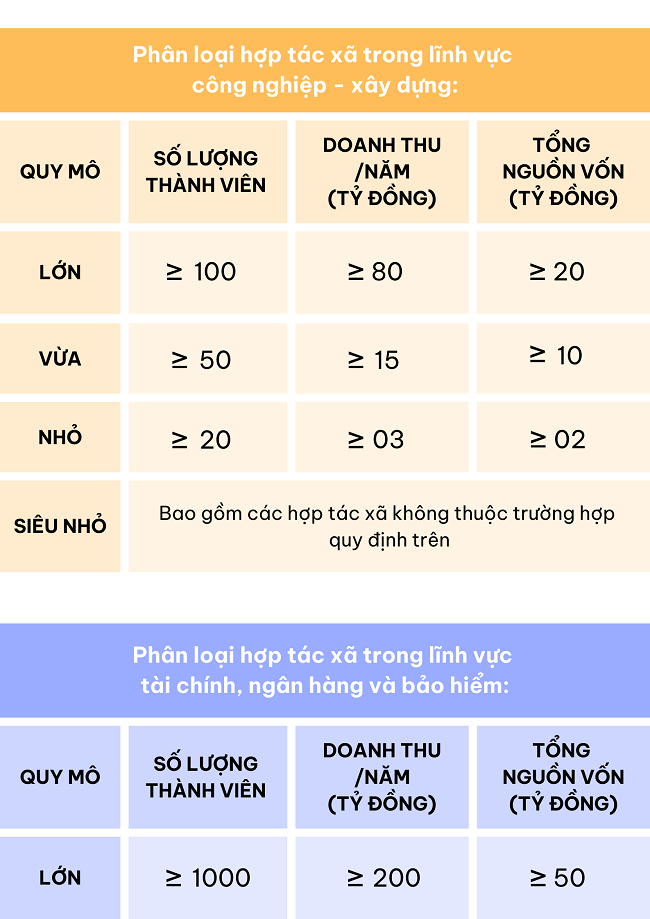 Ngày 12/9/2024 Chính phủ ban hành Nghị định số 113/2024/NĐ-CP quy định chi tiết một số điều của luật hợp tác xã với phân loại quy mô hợp tác xã tại điều 5 như sau: