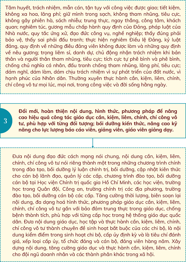 Ngày 16/01/2025, Bộ Chính trị ban hành Chỉ thị số 42-CT/TW về tăng cường sự lãnh đạo của Đảng đối với công tác giáo dục cần, kiệm, liêm, chính, chí công vô tư, với một số nhiệm vụ và giải pháp trọng tâm sau: