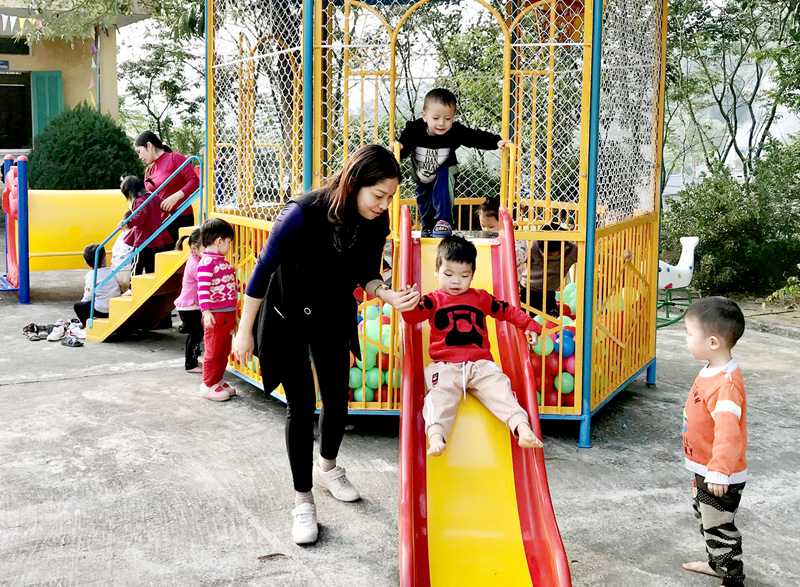 Đồng chí Phạm Thị Nhị Bình, Phó Chủ tịch UBND huyện cho biết, hiện nay toàn huyện có 945 giáo viên mầm non trực tiếp đứng lớp, trong đó có 926 giáo viên công lập và 19 giáo viên ngoài công lập. Năm học 2020 - 2021, huyện có 34 trường mầm non công lập với 162 điểm trường; 1 trường mầm non tư thục và 5 nhóm trẻ ngoài công lập. Huyện được giao kế hoạch tăng tỷ lệ trẻ đi nhà trẻ là 2.424 trẻ chiếm 31,6% kế hoạch. Tính đến nay, huyện đã huy động được 2.969/7.943 trẻ, tỷ lệ huy động đạt 37,4%. Tổng số trẻ nhà trẻ ngoài công lập là 144 trẻ chiếm tỷ lệ 4,9%. So với mục tiêu kế hoạch tăng 5,8%; so với thời điểm trước khi thực hiện Nghị quyết tăng 24,8%.