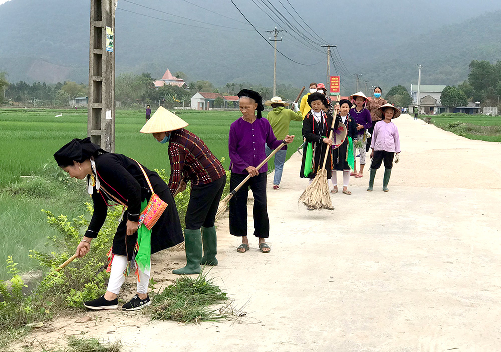 Phụ nữ xã Thiện Kế (Sơn Dương) vệ sinh đường làng ngõ xóm.