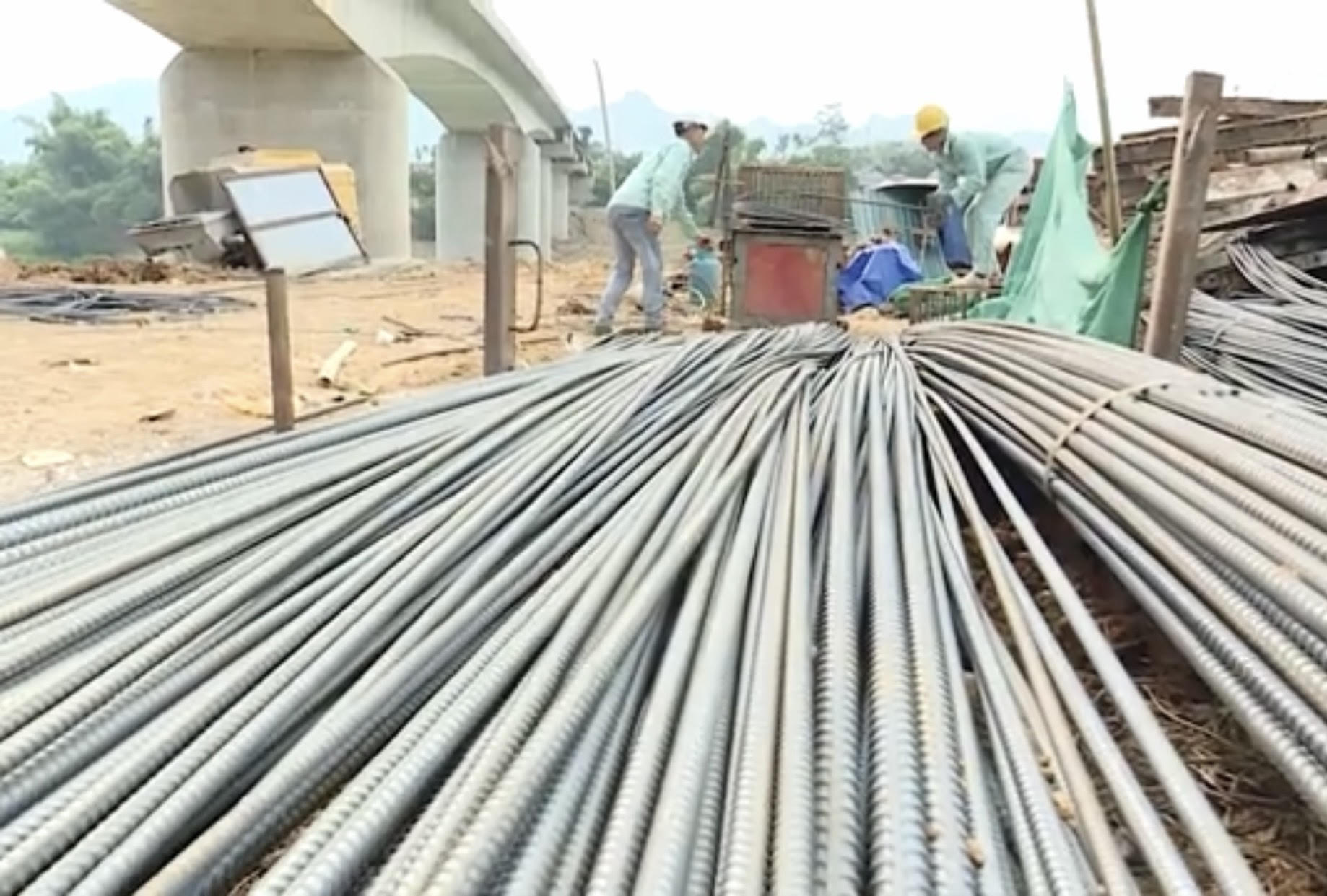 Công nhân hối hả trên công trường