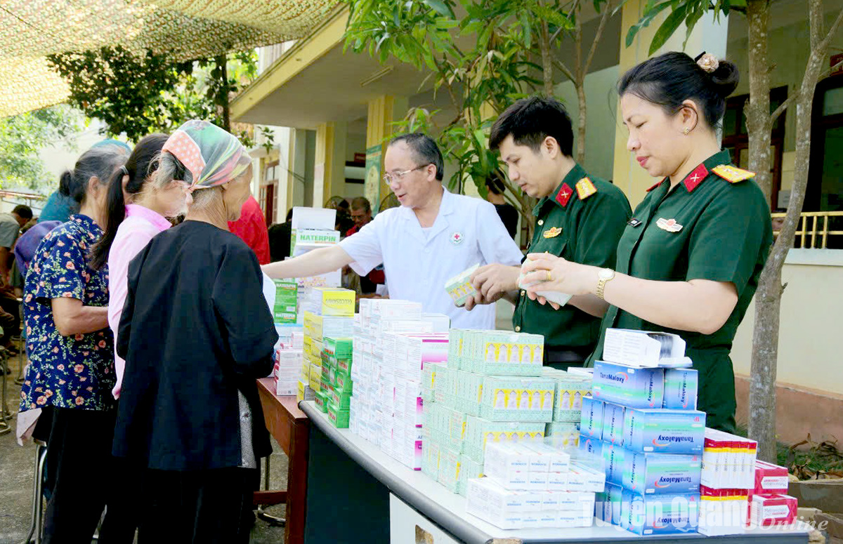Bộ CHQS tỉnh tổ chức khám và cấp phát thuốc miễn phí cho người dân có hoàn cảnh khó khăn xã Lương Thiện (Sơn Dương).