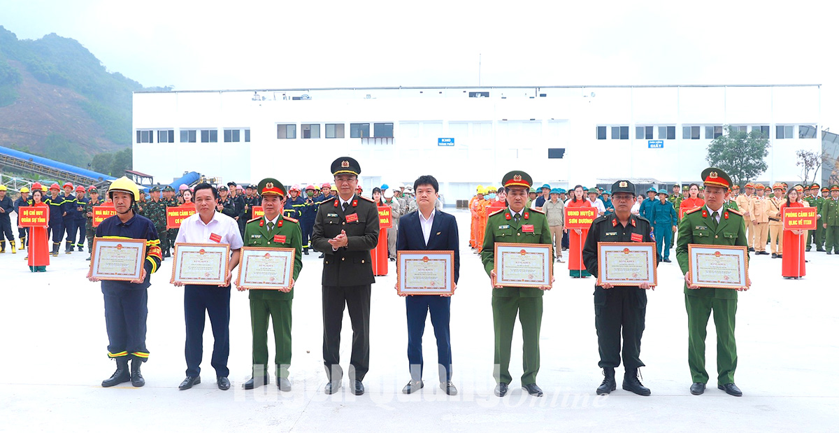 Buổi diễn tập đã diễn ra thành công tốt đẹp, các lực lượng tham gia hoàn thành xuất sắc nhiệm vụ, đạt mục đích và các yêu cầu đề ra, đảm bảo an toàn tuyệt đối về người và phương tiện. Ghi nhận và biểu dương những thành tích đạt được trong tổ chức, triển khai thực hiện nhiệm vụ diễn tập, Chủ tịch UBND tỉnh tặng Bằng khen cho 2 tập thể và 5 cá nhân; Giám đốc Công an tỉnh tặng Giấy khen cho 9 tập thể và 17 cá nhân.