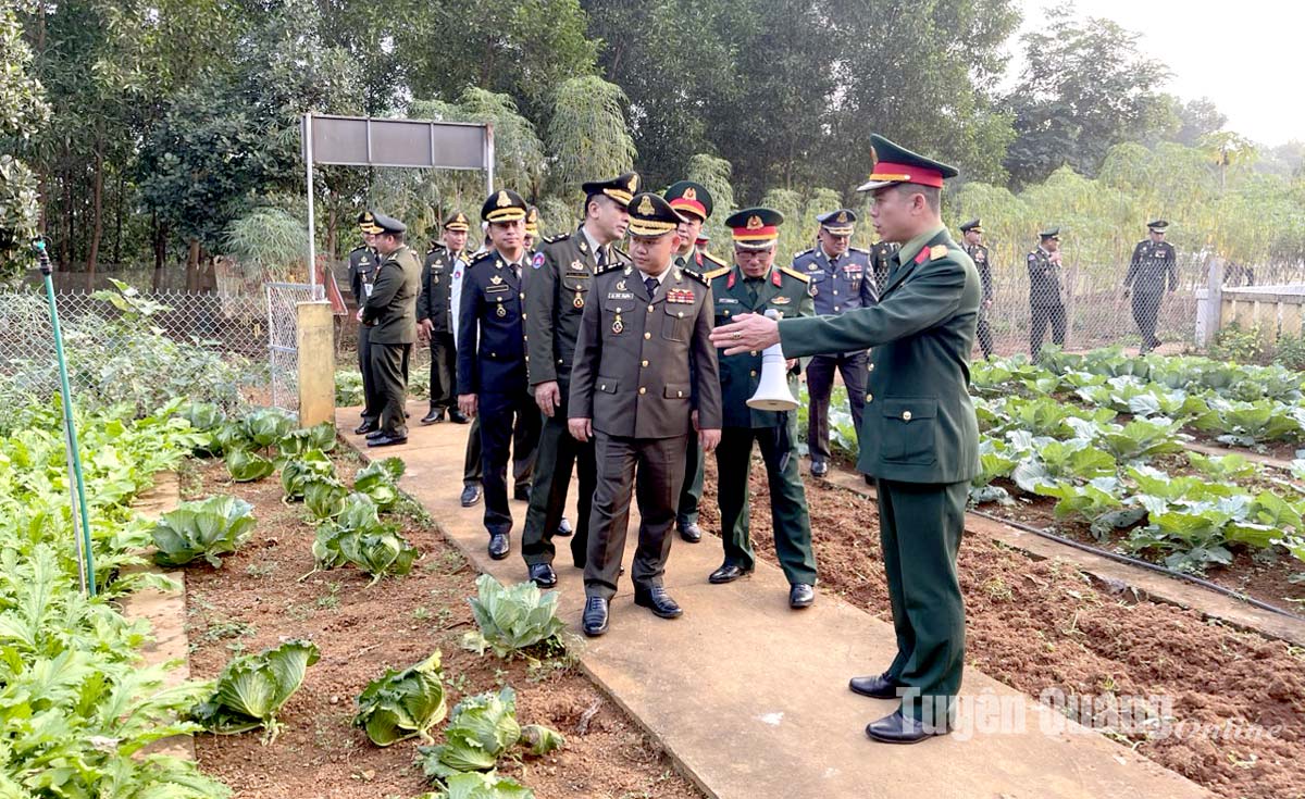 Đoàn đã tham quan thực tế cơ sở doanh trại, nơi ăn, ở, làm việc; nghe giới thiệu các mô hình, cách vận dụng sáng tạo trong công tác hậu cần, quân nhu, khu tăng gia sản xuất của Ban CHQS thành phố.
