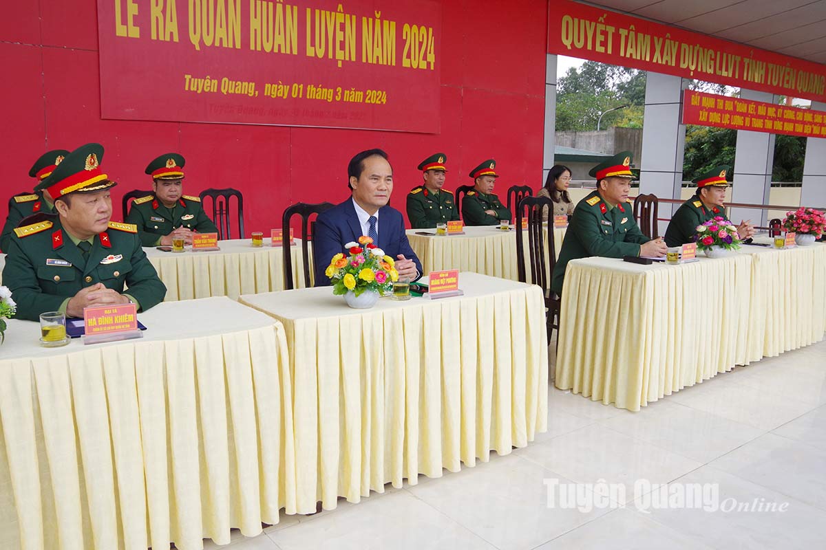 Phát biểu tại Lễ ra quân huấn luyện, đồng chí Phó Chủ tịch UBND tỉnh Hoàng Việt Phương yêu cầu công tác huấn luyện lực lượng thường trực, dự bị động viên, dân quân tự vệ đảm bảo đúng quy định; thực hiện tốt Quy chế phối hợp giữa Công an và Quân sự; tích cực đổi mới phương pháp huấn luyện, bồi dưỡng, nâng cao kiến thức khoa học quân sự, trình độ quản lý, chỉ huy huấn luyện; xây dựng LLVT tỉnh cách mạng, chính quy.