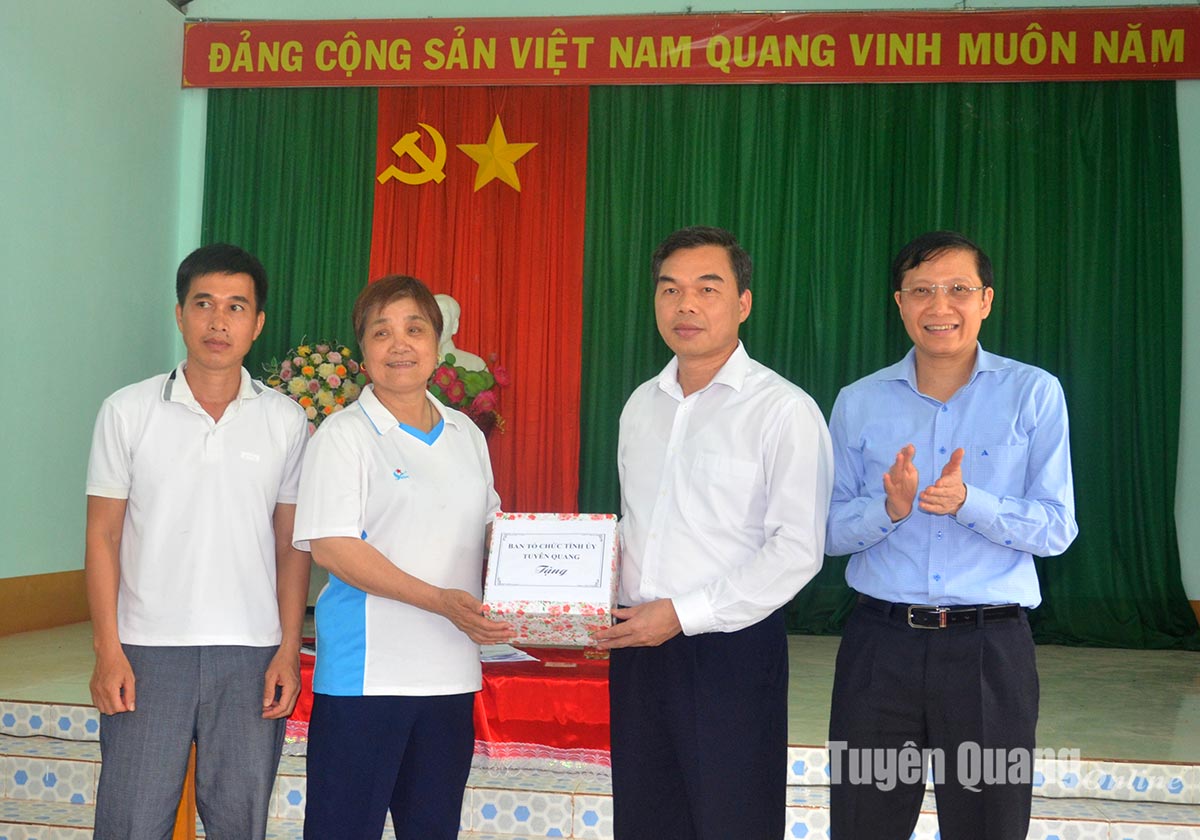 Đồng Chí Ma Thế Hồng, Uỷ viên Ban Thường vụ Tỉnh ủy, Trưởng Ban Tổ chức Tỉnh ủy, Bí thư Đảng ủy Khối các cơ quan và doanh nghiệp tỉnh tặng quà cho Chi bộ Đồng Tâm.