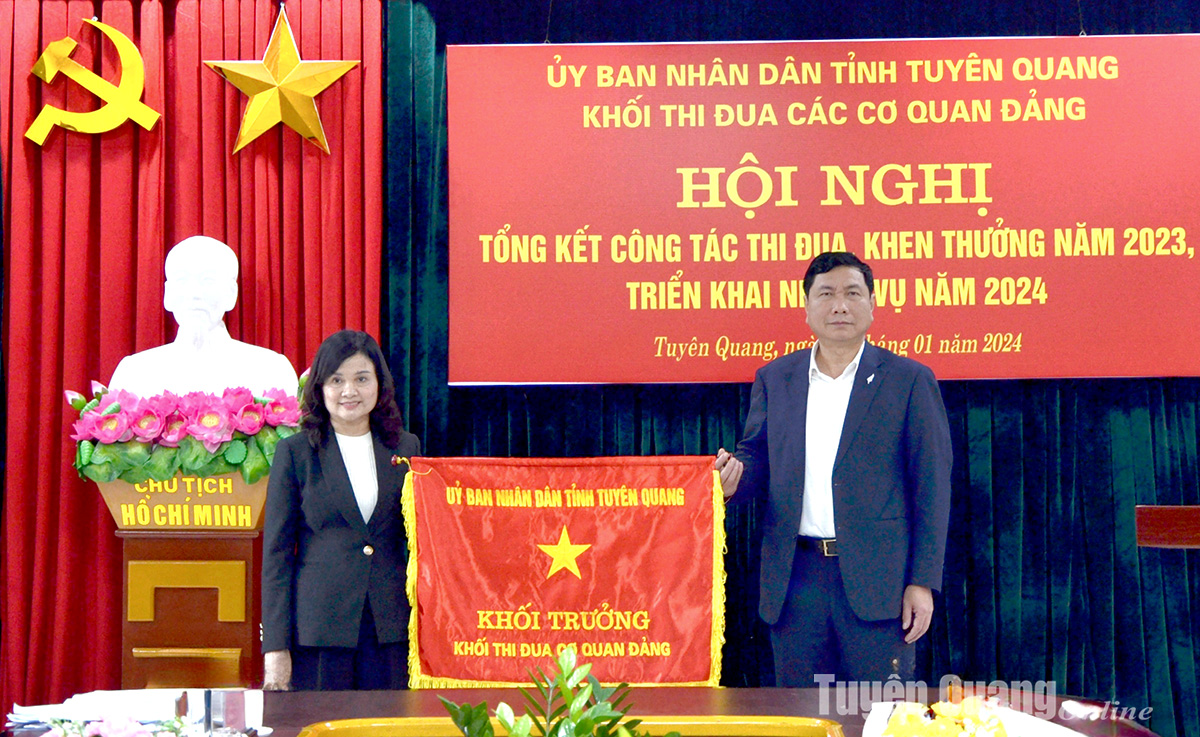 Tại hội nghị, các cơ quan thành viên của Khối thi đua đã thực hiện bình xét thi đua, khen thưởng năm 2023. Theo đó, nhất trí đề nghị tặng Cờ thi đua của Chính phủ cho Báo Tuyên Quang; đề nghị tặng Cờ thi đua của UBND tỉnh cho Trường Chính trị tỉnh và đề nghị tặng Bằng khen của UBND tỉnh cho 5 đơn vị là: Đảng ủy Khối các cơ quan và doanh nghiệp tỉnh, Ban Tổ chức Tỉnh ủy, Ban Tuyên giáo Tỉnh ủy, Ban Nội chính Tỉnh ủy và Văn phòng Tỉnh ủy.