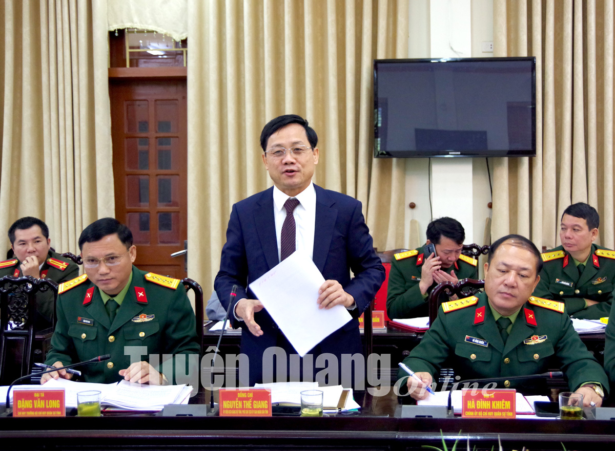 Phát biểu kết luận tại buổi tọa đàm, đồng chí Phó Chủ tịch UBND tỉnh Nguyễn Thế Giang ghi nhận những ý kiến chỉ đạo của Trung tướng Nguyễn Anh Tuấn. Đồng chí nhấn mạnh, tỉnh sẽ tiếp tục lãnh đạo phát huy sức mạnh tổng hợp của cả hệ thống chính trị, của các lực lượng và toàn dân, bằng hệ thống giải pháp đồng bộ, phù hợp nhằm xây dựng thế trận trong KVPT vững chắc và động viên quốc phòng tỉnh, huyện hiệu quả. Toàn tỉnh sẽ đẩy mạnh xây dựng tổ chức Đảng, chính quyền ở địa phương vững mạnh. Các cấp đẩy mạnh giáo dục quốc phòng – an ninh cho toàn dân, trước hết là cho đội ngũ cán bộ, đảng viên; thực hiện tốt chủ trương kết hợp kinh tế với quốc phòng, quốc phòng với kinh tế. Trên cơ sở nắm vững quan điểm của Đảng về quốc phòng toàn dân, chiến tranh nhân dân bảo vệ Tổ quốc, triển khai xây dựng lực lượng quốc phòng, nòng cốt là lực lượng vũ trang nhân dân trên các địa bàn.