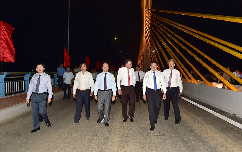Các đồng chí lãnh đạo tỉnh và đại biểu tham quan cầu Tình Húc. Ảnh: Thành Công