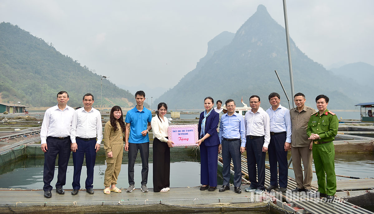 Khảo sát phát triển thủy sản trên lòng hồ tại Hợp tác xã thủy sản Na Hang hiện đang thực hiện nuôi trồng thủy sản theo Tiêu chuẩn VietGAP với 300 lồng, sản lượng ước đạt 50 tấn/năm, bao gồm cá đặc sản (cá bỗng, cá lăng chấm, cá tâm), cá chủ lực (cá nheo, cá lăng đen, cá chép, trăm, rô phi...), đồng chí Bí thư Tỉnh ủy đánh giá cao mô hình đã tận dụng tiềm năng để phát triển. Đồng chí đề nghị huyện tiếp tục quan tâm tạo mọi điều kiện thuận lợi để hợp tác xã mở rộng quy mô sản xuất. Đồng thời khuyến khích phát triển thêm nhiều hợp tác xã trên địa bàn. Đồng chí cũng lưu ý quá trình khai thác, chăn nuôi cần đảm bảo các yêu cầu về môi trường.