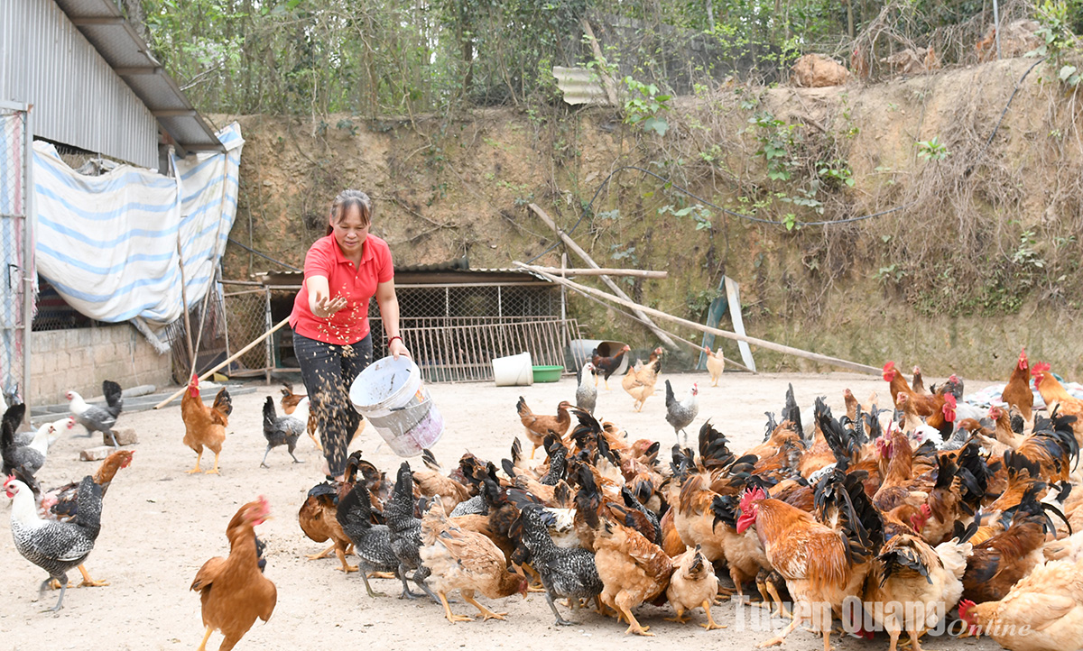 Bà Lê Thị Duyên, thôn Thanh Sơn, xã Hợp Hòa (Sơn Dương) nuôi gà bằng sâu canxi.