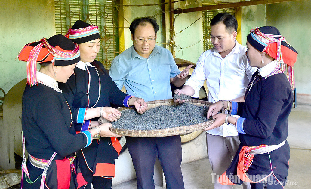 Lãnh đạo xã Thượng Nông (Na Hang) kiểm tra sản phẩm chè tại cơ sở sản xuất chè Bàn Tranh, thôn Pác Củng.