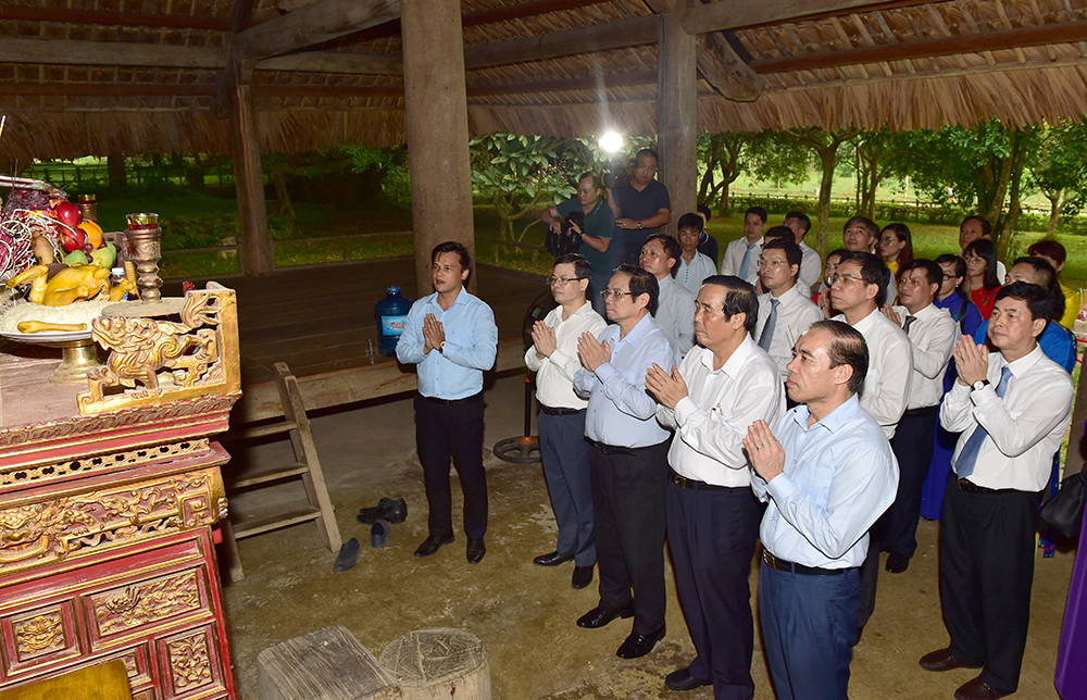 Các đồng chí lãnh đạo Ban Tổ chức Trung ương và lãnh đạo tỉnh dâng hương tại đình Tân Trào.
