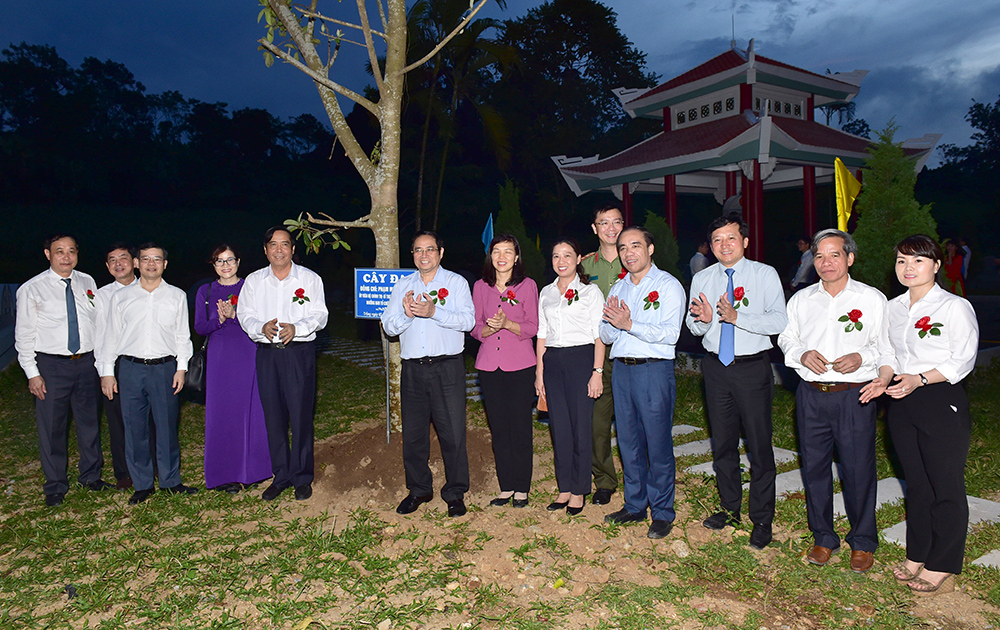 Các đồng chí lãnh đạo Ban Tổ chức Trung ương, lãnh đạo tỉnh trồng cây lưu niệm tại khuôn viên