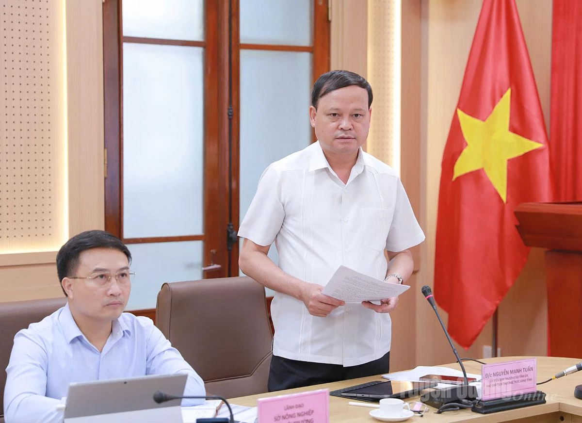 | Phó Chủ tịch Thường trực UBND tỉnh Nguyễn Mạnh Tuấn phát biểu ý kiến tại buổi làm việc. |