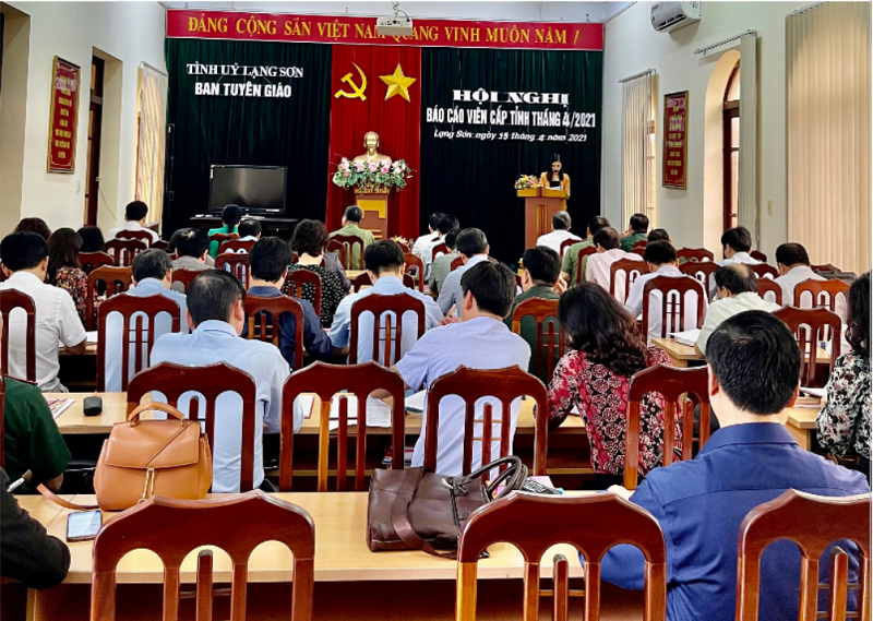 Tuyên truyền miệng tại hội nghị Báo cáo viên cấp tỉnh tháng 4/2021 tại Lạng Sơn.