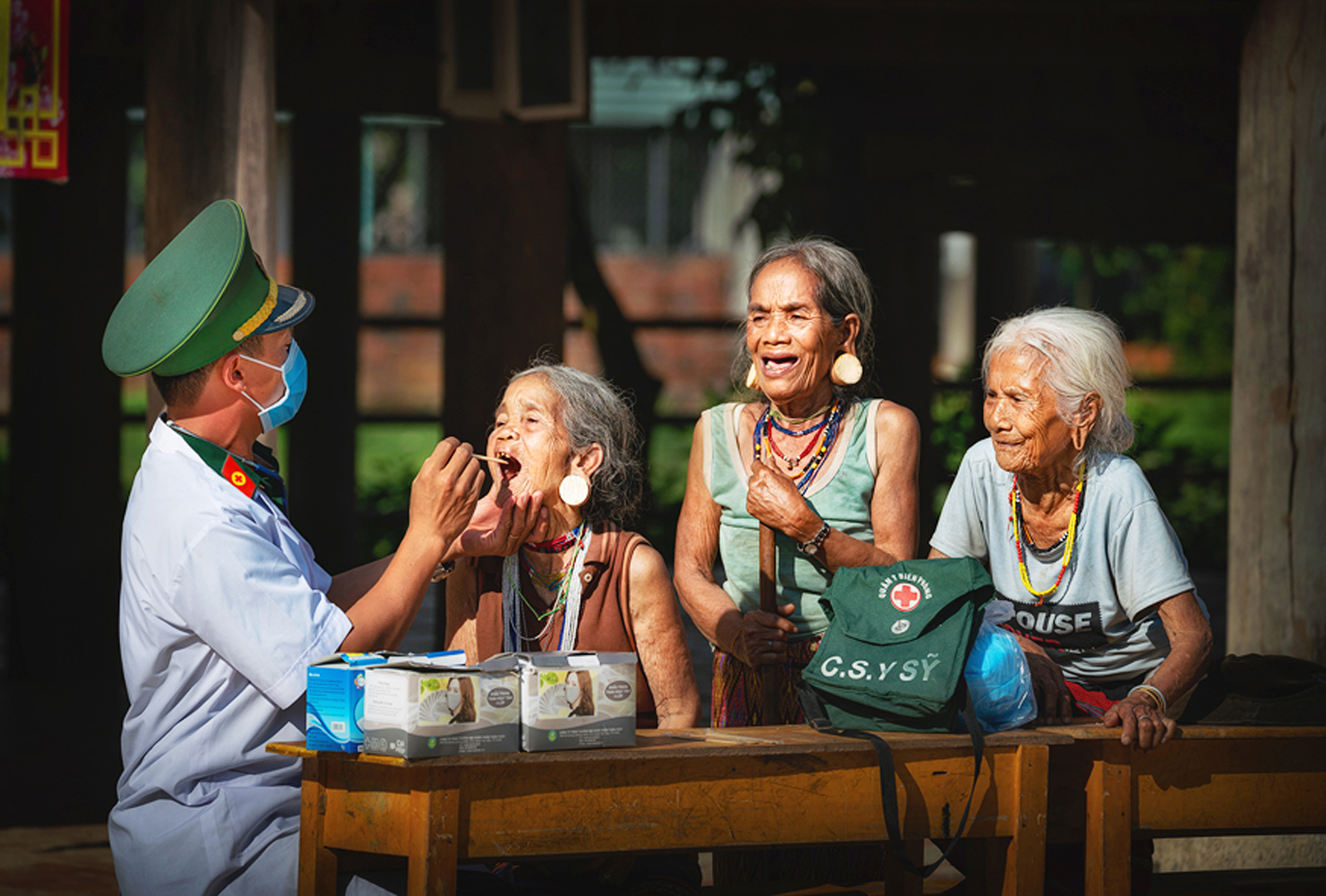 Cán bộ, chiến sĩ quân y thăm, khám bệnh cho đồng bào ở Tây Nguyên _Nguồn: vapa.org.vn