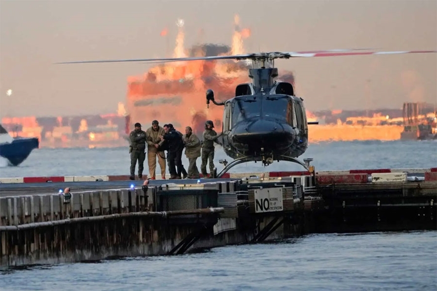 Lực lượng Mỹ áp giải vợ chồng Tổng thống Venezuela Nicolas Maduro đến tòa án ngày 5-1. Ảnh: New York Times.