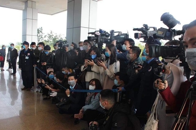 Các phóng viên tác nghiệp tại điểm nóng tuyến đầu điều trị - Bệnh viện Bệnh Nhiệt đới Trung ương.