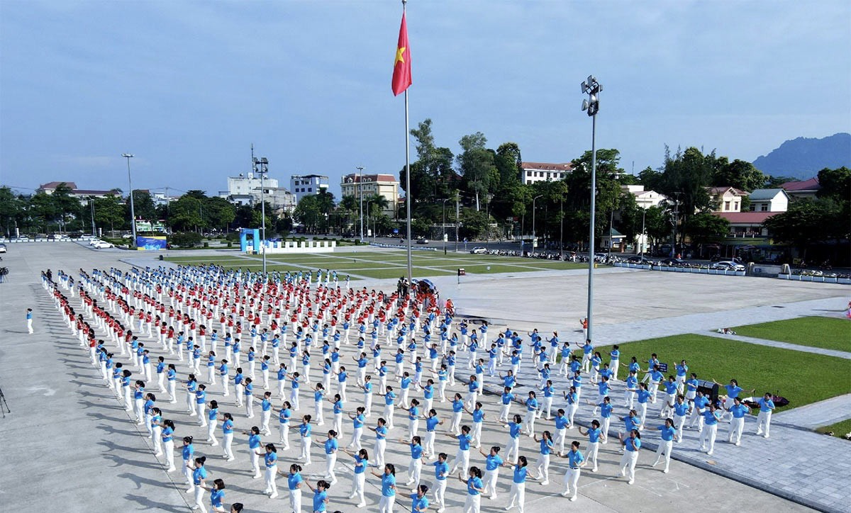 Cán bộ, hội viên phụ nữ tham gia đồng diễn tại Quảng trường Nguyễn Tất Thành.